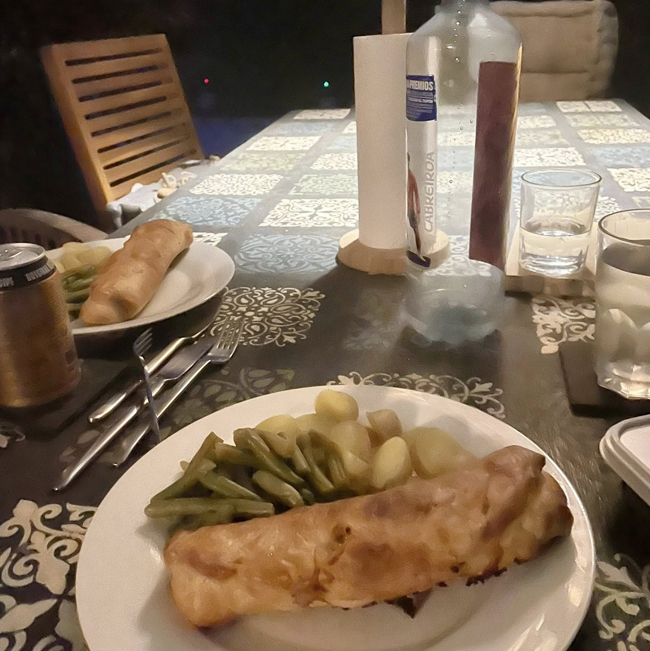 You would think given the recent weather being radioactive that I might have got my head round something that cooks in a trice and requires little or no governance but hell no. On with the oven and in my stuff goes. Which leads me neatly on to one of my go to in a hot spell dinners. Salmon on Croute. Sounds fancy, my version looks more like a Greggs sausage roll, aesthetics were not great with this one as Darren bought the round puff pastry instead of the rectangular, it comes ready rolled here, and yes I am not making my own rough puff aside from the fact butter reaches melting point out of the fridge within two minutes why would I? So I had to get creative with the long fillets I had pulled out of the freezer hence the elongated sausage shape. Served very simply with green beans and salad potatoes it looks boring as but it was lush. I had salted butter on the beans and potatoes as we were eating and the salmon had been seasoned with butter lemon salt and pepper before being wrapped in its coat of flaky. In the oven for 20 mins until the pastry is golden and on to the plate. Definitely not instagram worthy but if you want a tasty dinner that pretty much cooks itself then give it a go. If you want pretty pictures melt your butter to glaze your veg, maybe have veg thats not come out of a jar or tin and score and sweep a bit of milk or beaten egg over the pastry before baking.